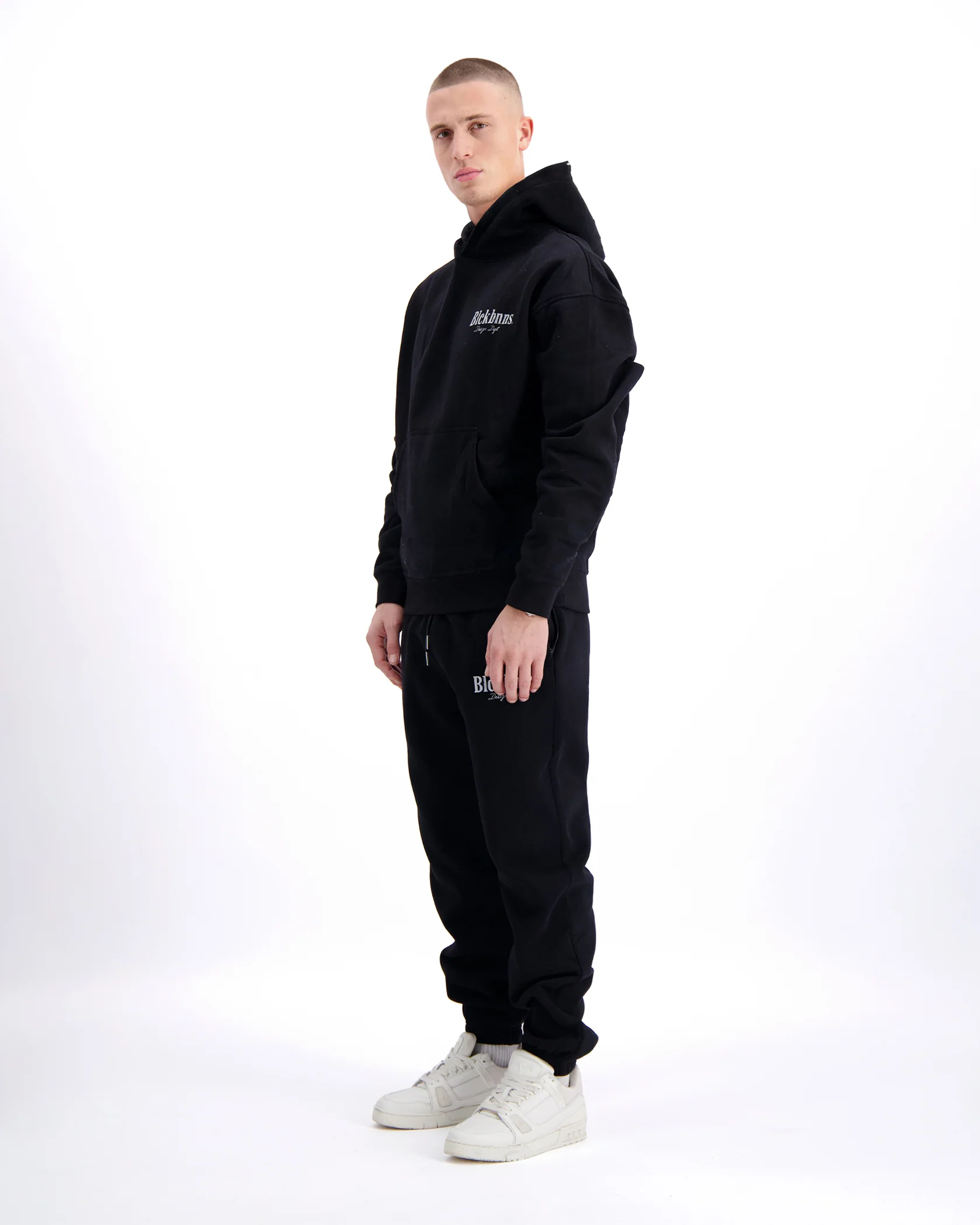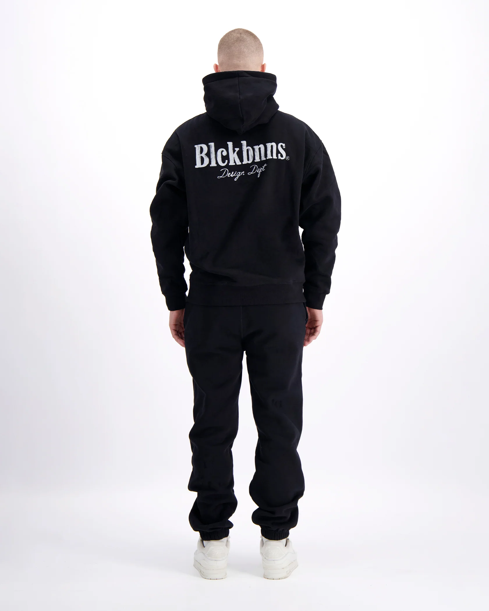 - BLCK BNNS Design Dept gedrukt op de achterkant van de hoodie