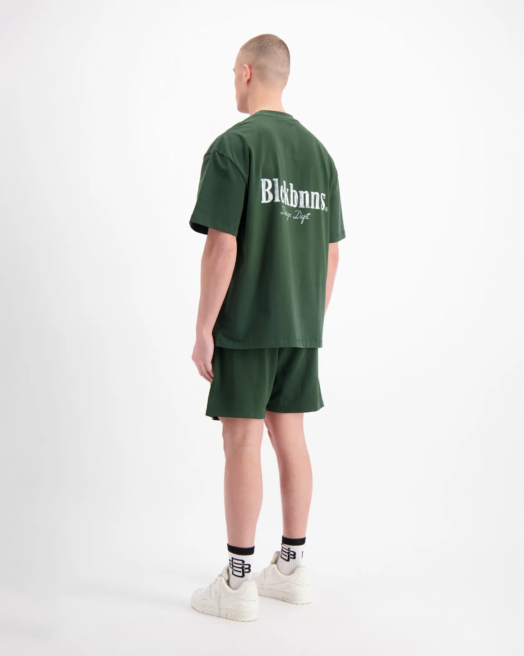 - BLCK BNNS Design Dept gedrukt op de achterkant van het t-shirt
