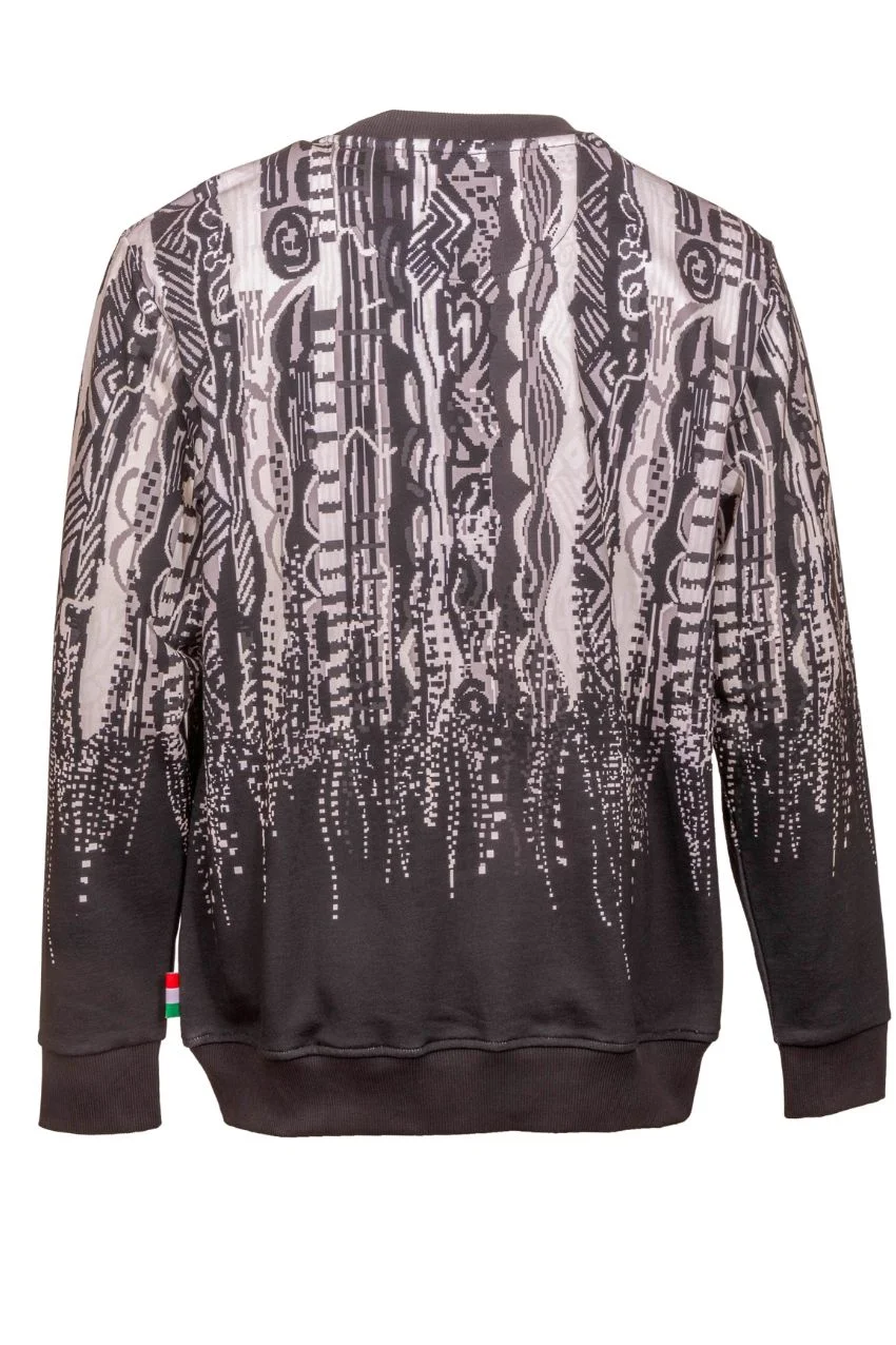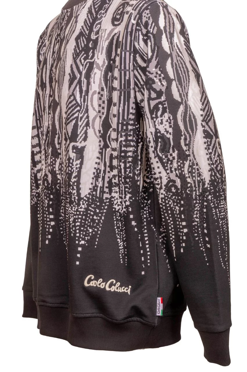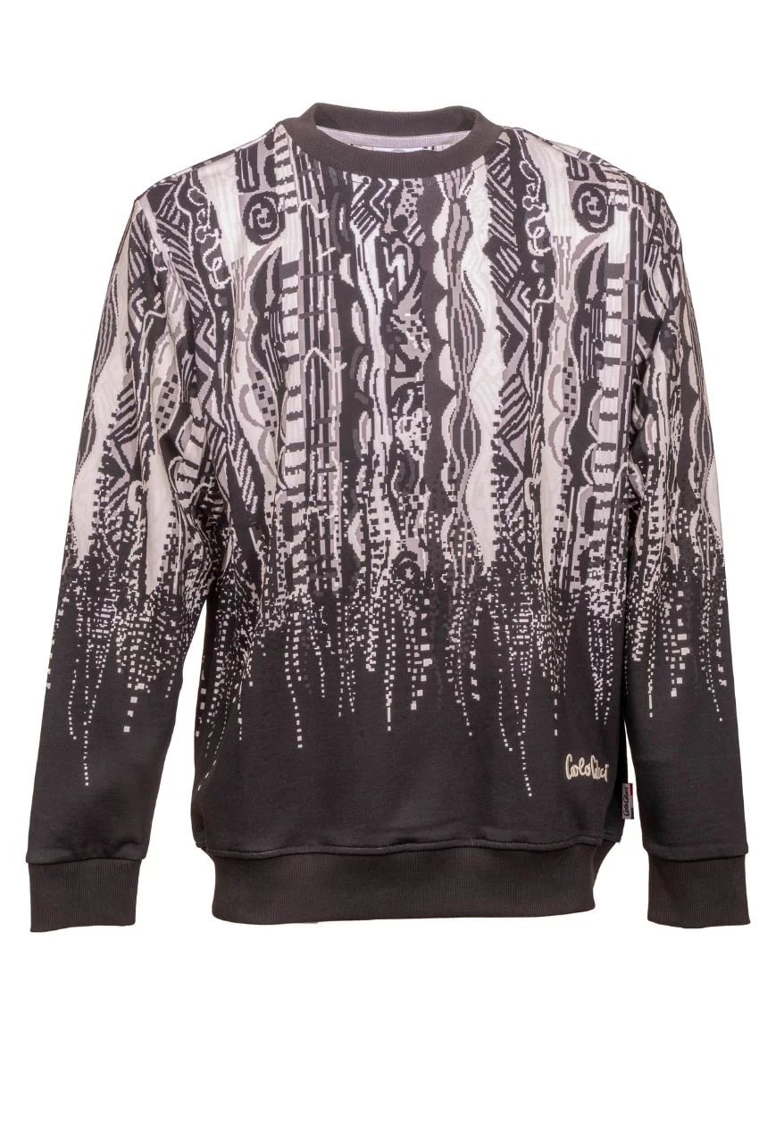 Carlo Colucci Allover Print Sweater Dark Grey. Dit is een sweater van het merk Carlo Colucci. Deze sweater van Carlo Colucci heeft donker grijze en witte tinten in het bekende carlo colucci print. De Carlo Colucci sweaters staan bekend om hun patronen en breiwerk. Deze sweater is dunner dan de pullovers.