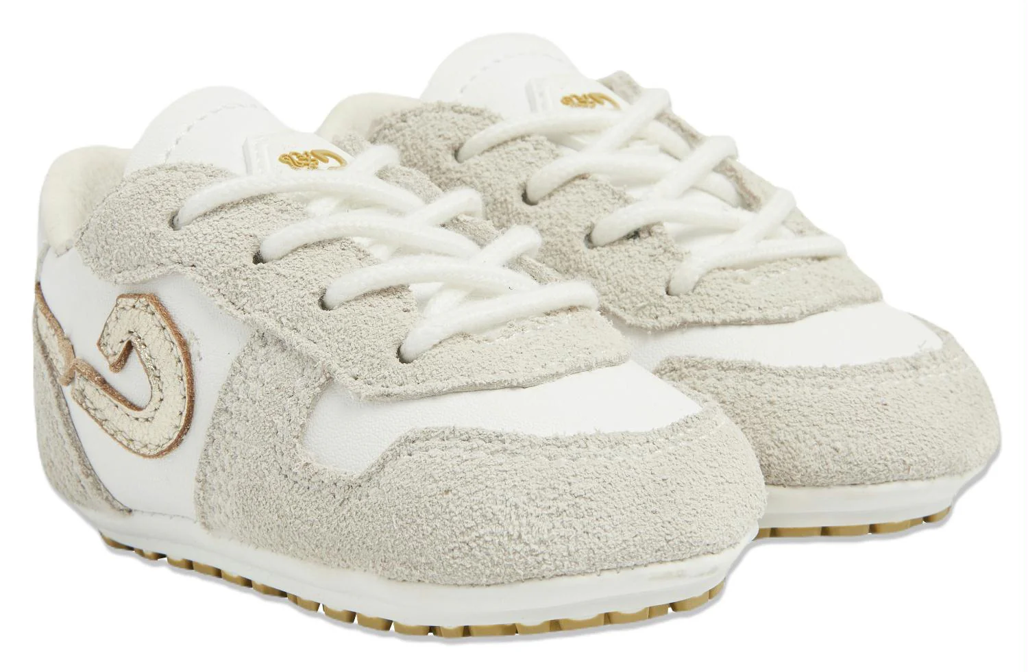 De Cruyff Babysneaker – Faas Junior in goud is de ideale keuze voor kleine trendsetters die stijl en comfort belangrijk vinden. Deze babyschoenen zijn vervaardigd uit hoogwaardig wit leer, versierd met een elegant goudkleurige striping. De luxe uitstraling maakt ze perfect voor zowel speciale gelegenheden als dagelijks gebruik.