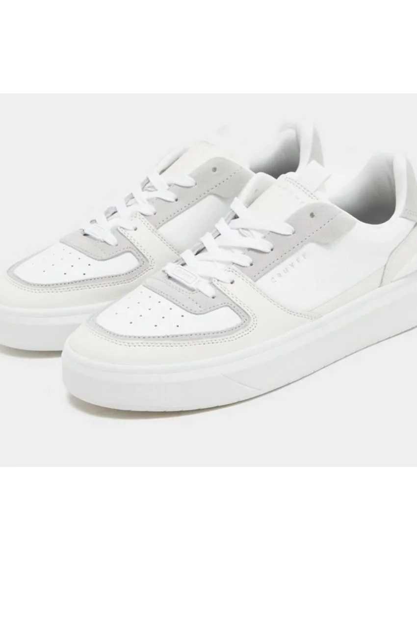 Cruyff Superfire Tennis Sneakers Wit. De sneakers hebben een frisse witte kleur en een sportieve uitstraling, het Cruyff logo is gevestigd aan de zijkant van de schoen. De dikke rubberen cup zool zorgt voor een comfortabele pasvorm.