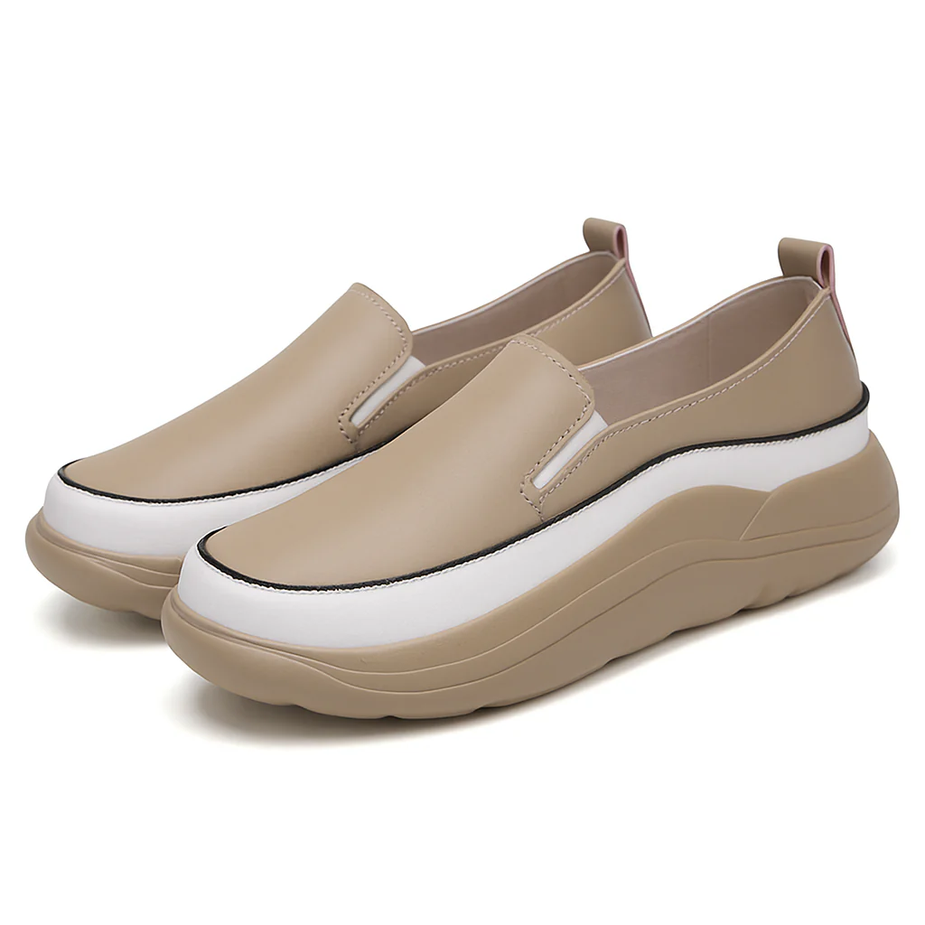 Deze comfortabele loafers geven elke outfit een verfijnde, moderne uitstraling. Dankzij het slip-on design trek je ze snel aan en zitten ze direct prettig. De zachte binnenzool en subtiele plateauzool zorgen voor een licht en elegant gevoel tijdens het lopen, ideaal voor werk, school of een dagje in de stad.