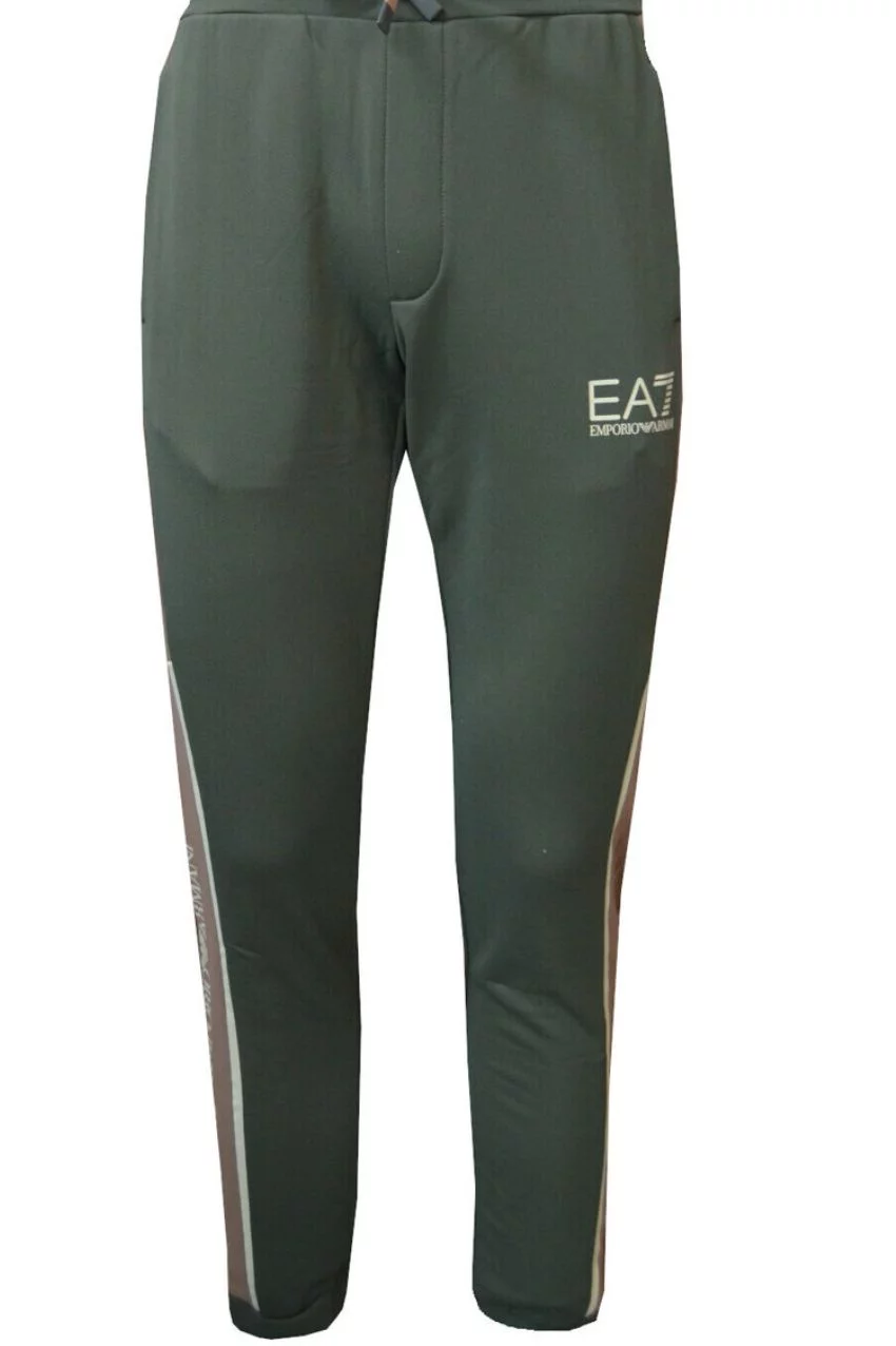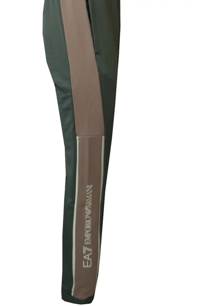 Emporio Armani EA7 Trainingsbroek Groen/Beige. Dit is een trainingsbroek van het merk Armani. De broek heeft een groene kleur in combinatie met beige wat zorgt voor een unieke uitstraling. De broek heeft een slim fit pasvorm en is voorzien van het iconische EA7 logo op de linker bovenbeen.