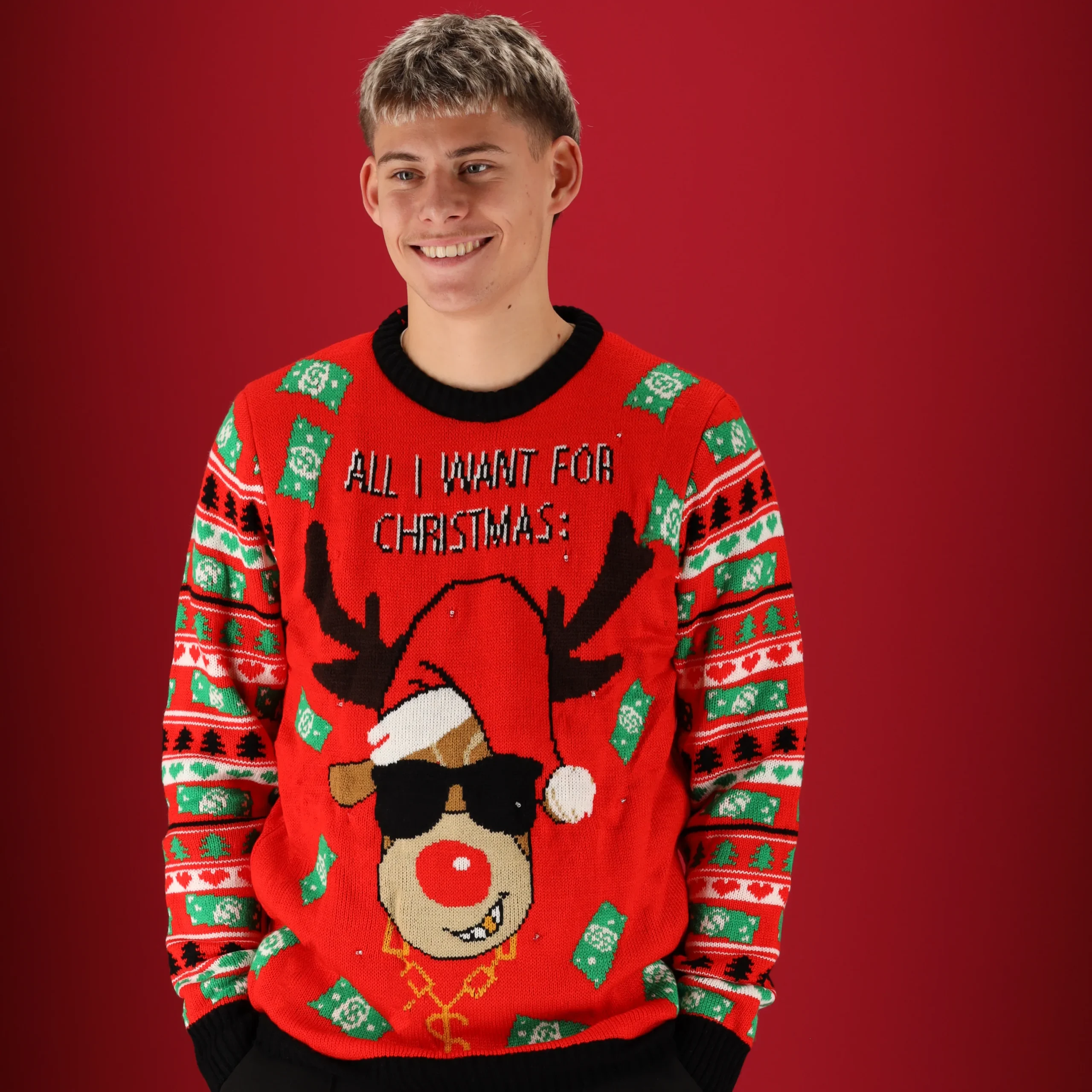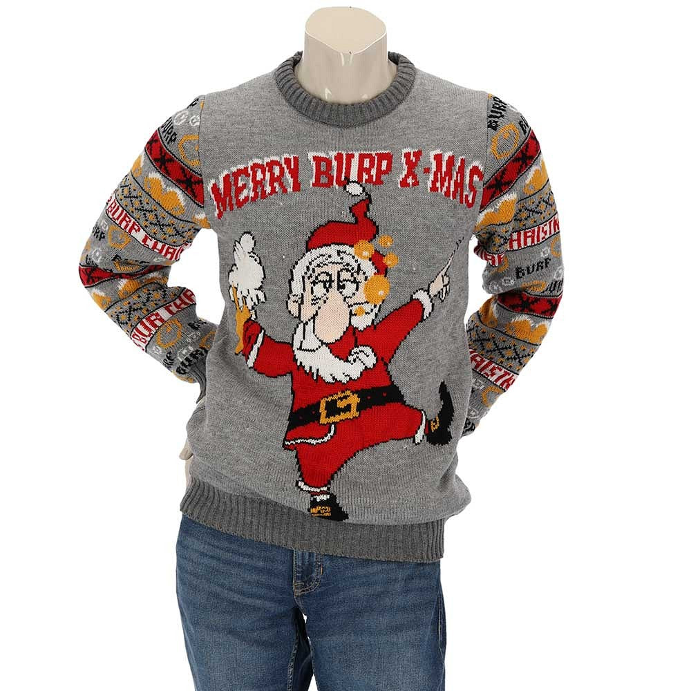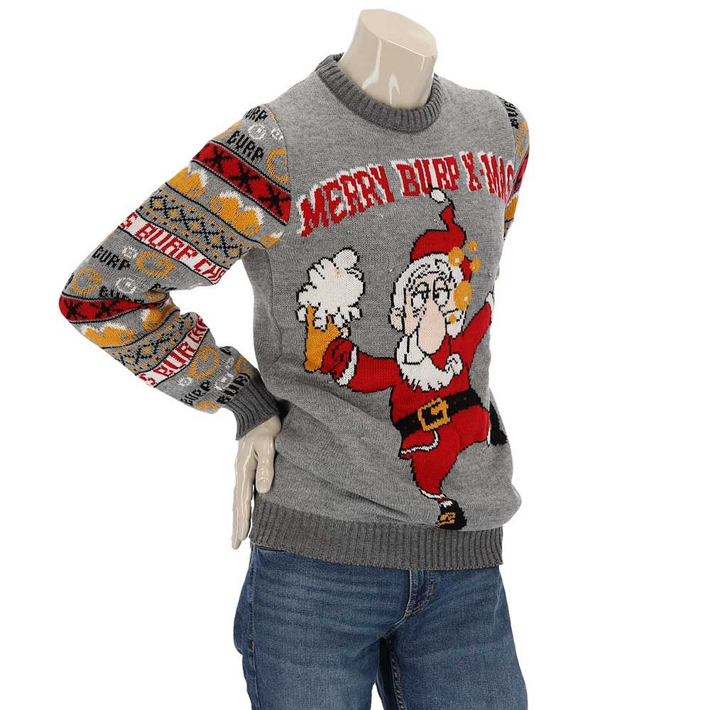 | Het kerstfeest kan beginnen met deze gebreide heren kersttrui met feestelijke ledverlichting. Deze foute kersttrui is voorzien van een vrolijk dessin in een echt kerstthema. De lange mouwen en ronde hals maken deze trui heerlijk comfortabel en lekker warm om te dragen. Merry Christmas, by Apollo. |