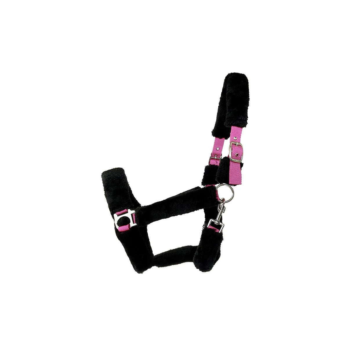 Het German Riding Halster “Fuzzy” in roze en zwart is ideaal voor paarden met een gevoelige huid. Dit zachte kunststof halster is voorzien van een vaste voering van imitatiebont, die schuren en drukpunten voorkomt en zo het comfort van je paard verhoogt.