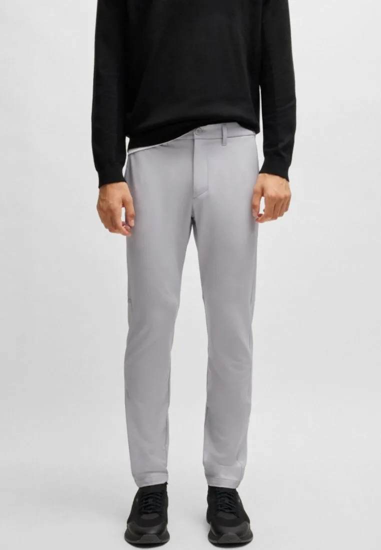 Hugo Boss Slim Fit Chino broek voor heren. Comfortabel dankzij het stretchmateriaal. De kleur van de chino is effen, waardoor het ideaal is in een casual context. Hugo Boss te combineren met een overhemd, een trui en sneakers of elegantere stadsschoenen.
