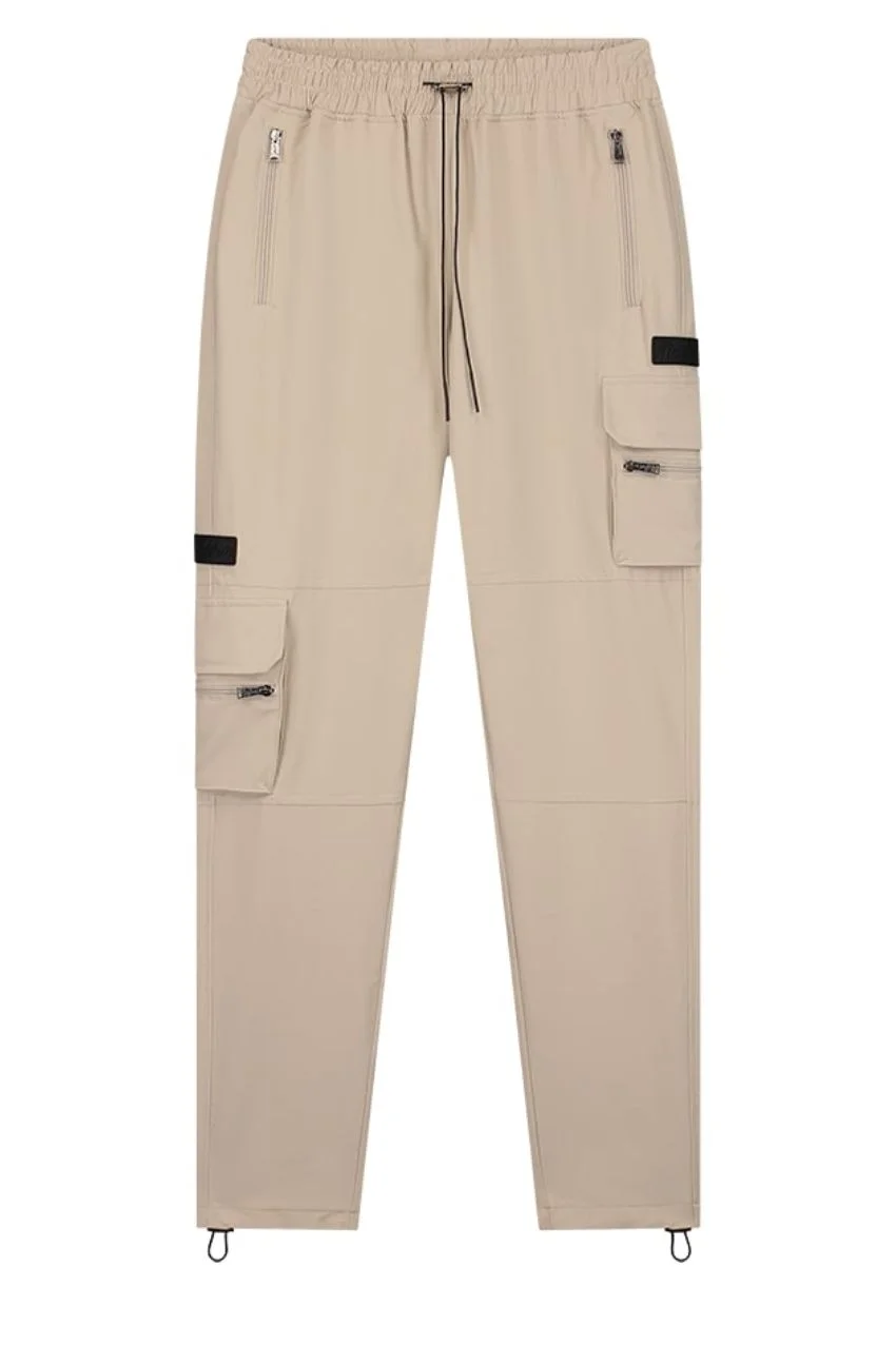 Malelions Men Pocket Cargo Pants 2.0. Dit is een cargo broek van het merk Malelions. De broek heeft een slim fit pasvorm en is beige van kleur, de typische cargo zakken op de broek zorgen voor een stoere uitstraling. Aan de voorkant bij de cargo zakken zijn twee Malelions logo’s te zien. De broek heeft een trekkoord waarbij je de broek strakker kan maken.