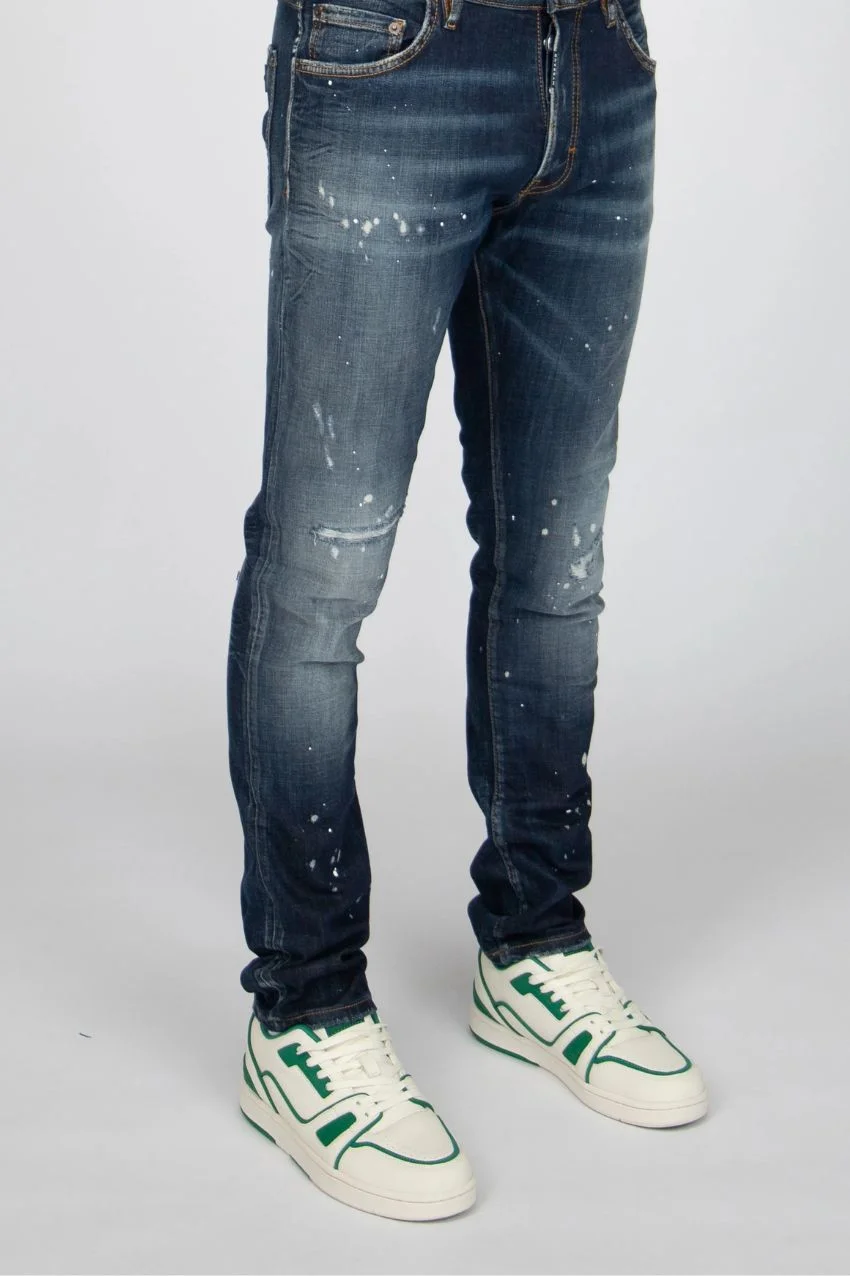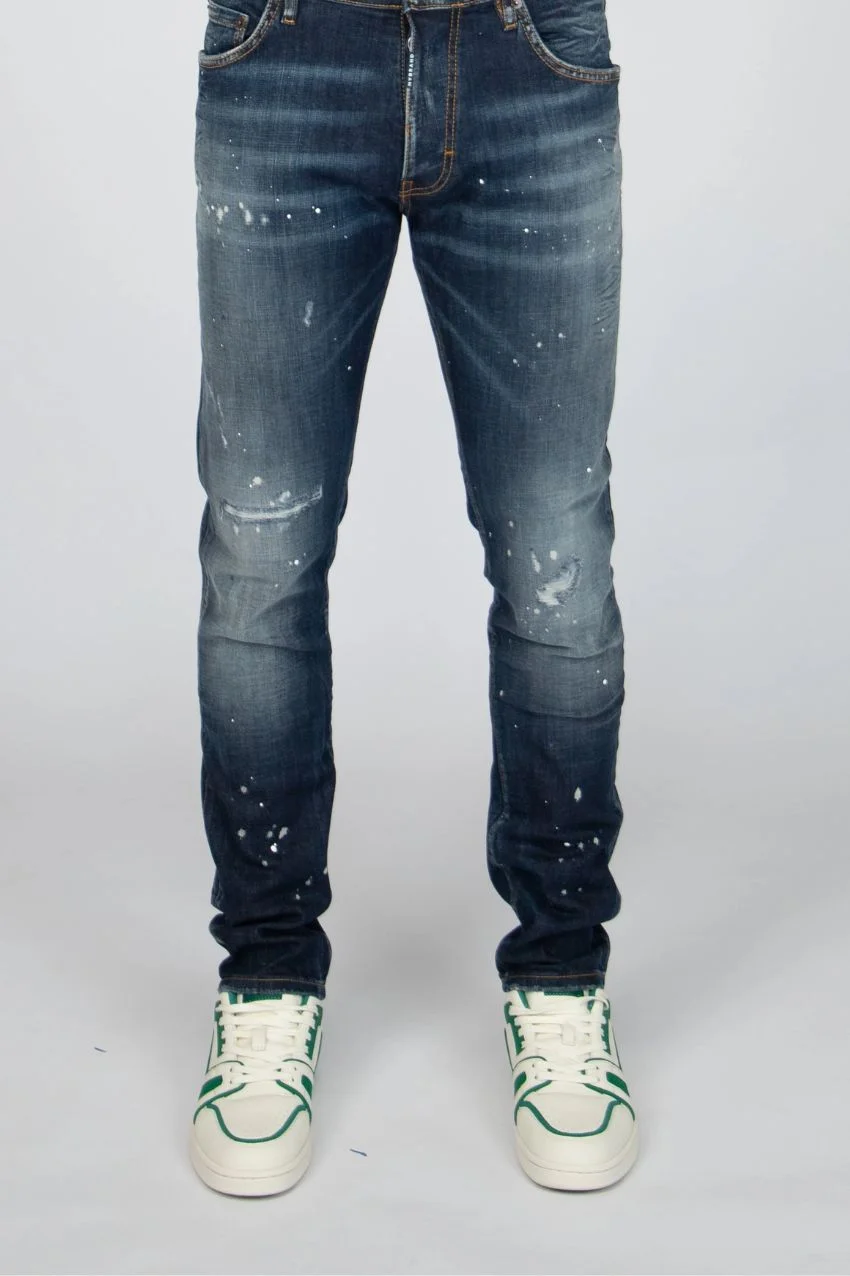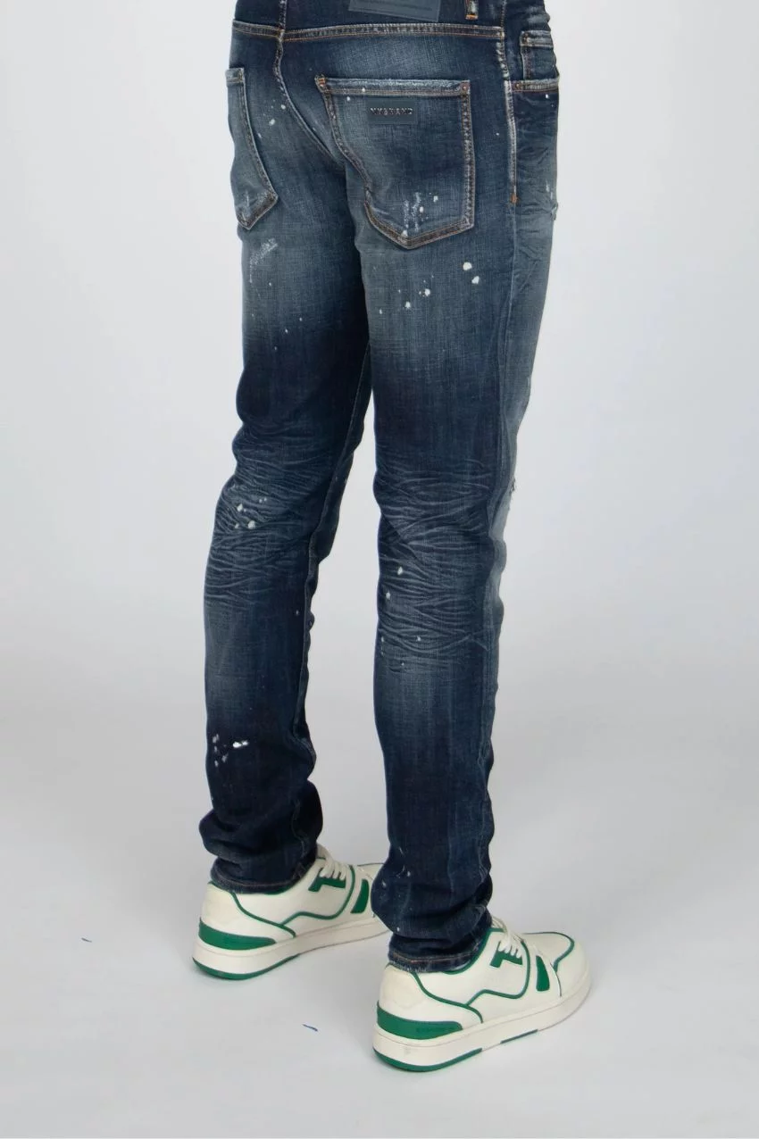 My Brand Stonewash Denim Jeans. Dit is een broek van het merk My Brand. Deze broek heeft een skinny fit pasvorm en heeft een donker blauwe denim kleur. De broek is ook voorzien van verf details en scheuren wat zorgt voor de klassieke My Brand look.