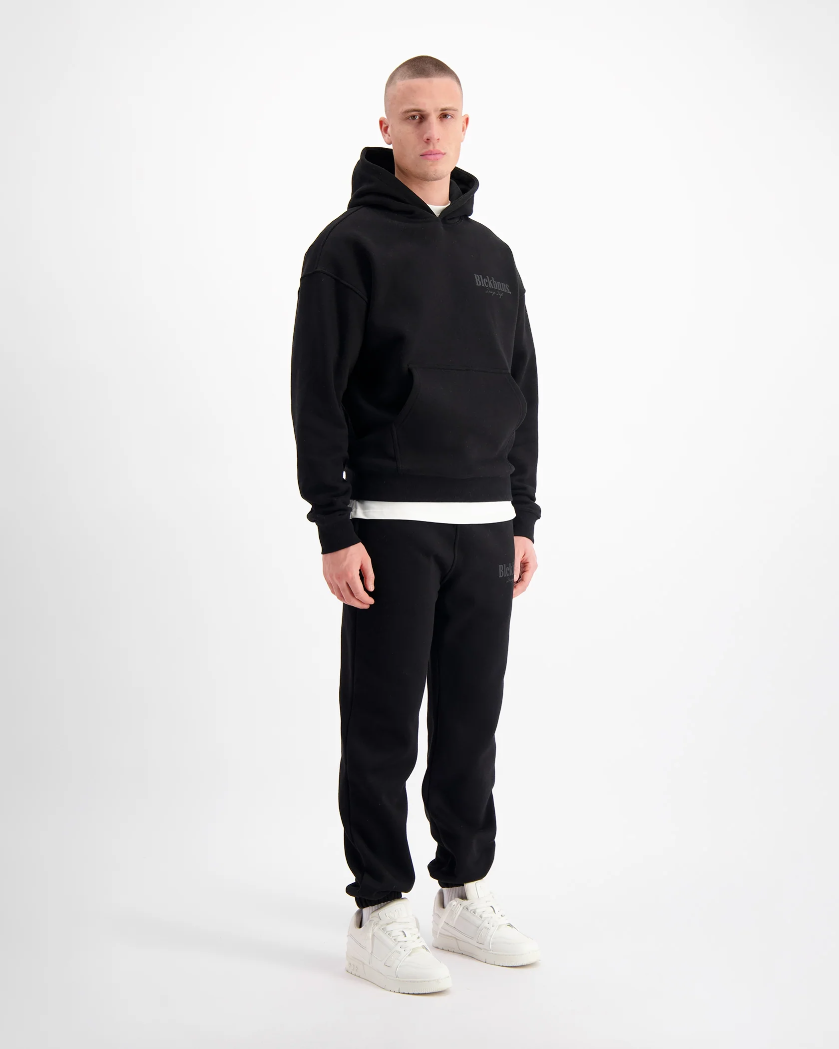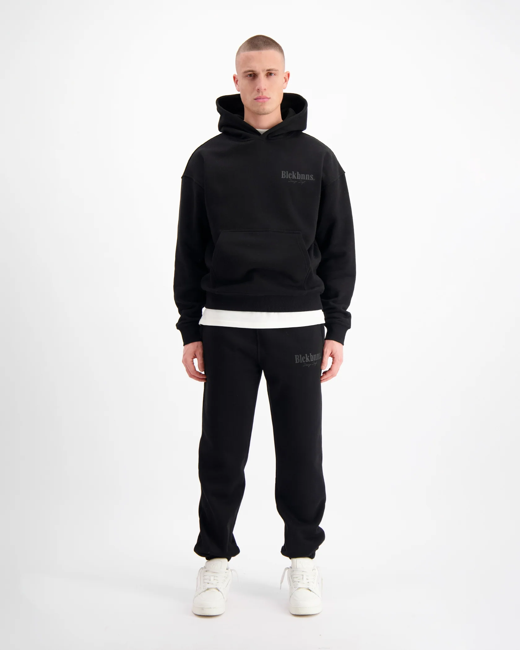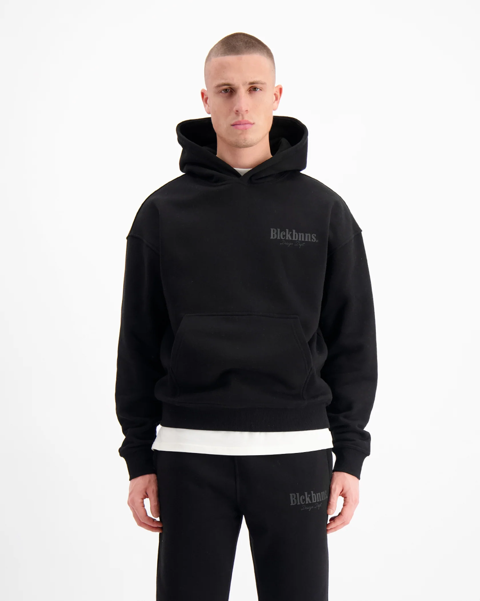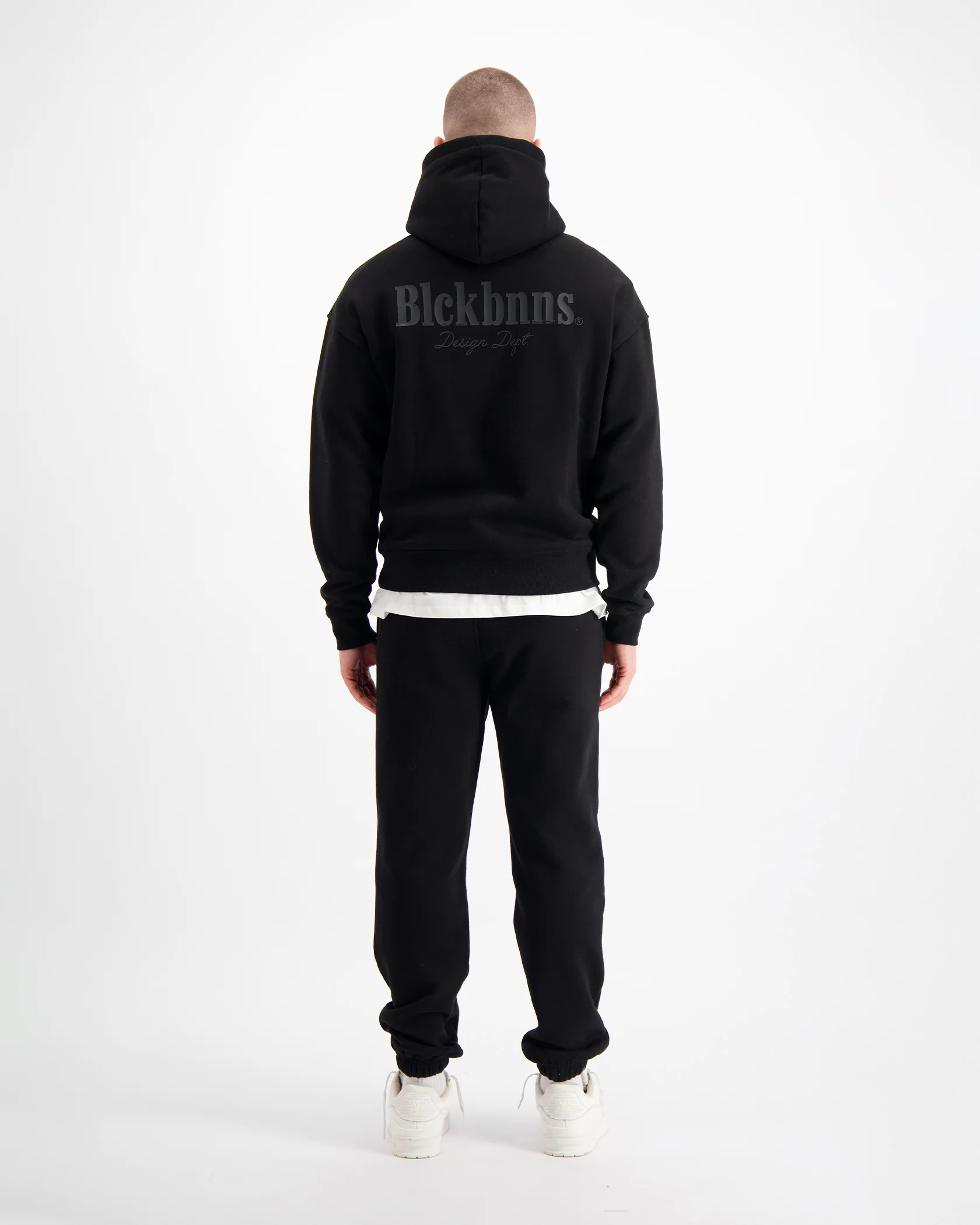 - BLCK BNNS Design Dept gedrukt op de achterkant van de hoodie