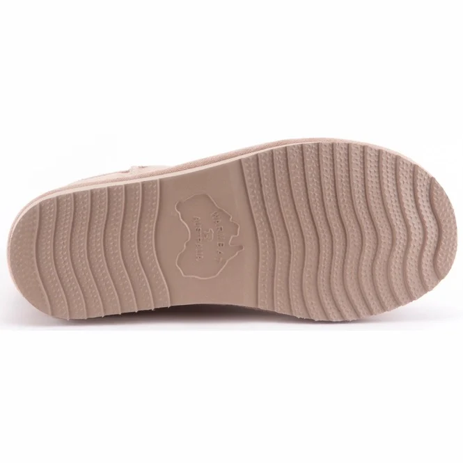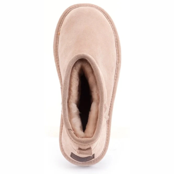 Nooit meer koude voeten met deze lage vacht laarzen van het Australische merk Warmbat! Dit beigekleurige model heeft een verhoogde wreef en beschikt over fraaie opstaande naden langs de schacht met een goudkleurige merkstud aan de schacht en een suède merklabel op de hiel. Met de handige aantreklus achterop de schacht trek je dit model gemakkelijk aan en uit. Hij is gemaakt van suède met een voering van 100% merino schapenwol. De soepele antislipzool is van natuurlijk rubber en is schokdempend en slijtvast. En met de natuurlijke temperatuur regulering heb je in de winter warme voeten en in de zomer koele voeten. Dat is nog eens comfortabel!